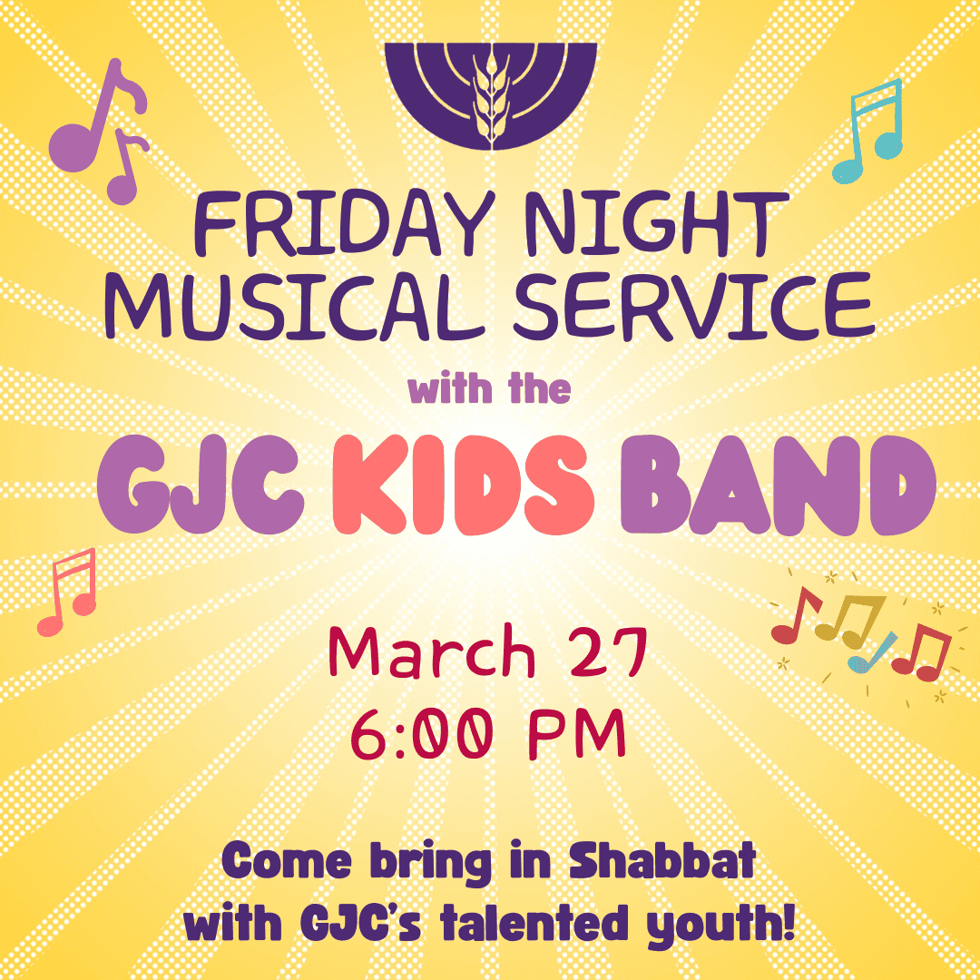 Please join Rabbi Adam Zeff and a group of musically talented GJC youth for a fun, meaningful, music-filled service to welcome Shabbat! If you’ve been looking for a chance to connect with different generations within GJC’s community, here’s your chance!
