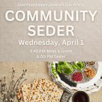 Pesah 5786/2026 will be observed from the evening of April 1 through April 9. Please see below for all the information you need to celebrate the Festival of Freedom this year!